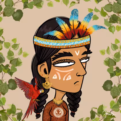 Collection Depressed Citizens Artist Juls Description ART. No team, no project, no future. Depressed Citizens is an urban & existential Art expression on Ordinals. In a parallel universe, "THEI" control us. DC unites against toxic society, encouraging critical thinking. 100% hand made collection that took Juls more than 6 months of daily work. Name Citizen#1888 Origin Native Gender Woman Necklace Pre-Columbian necklace Hat Colorful feather headdress Mustache Beard No beard Glasses No Glasses Earrings Upper lobe strass Hair Style Double braids Clothes Stop deforestation women long-sleeve shirt Tattoo No Tattoo Star Background Without stars