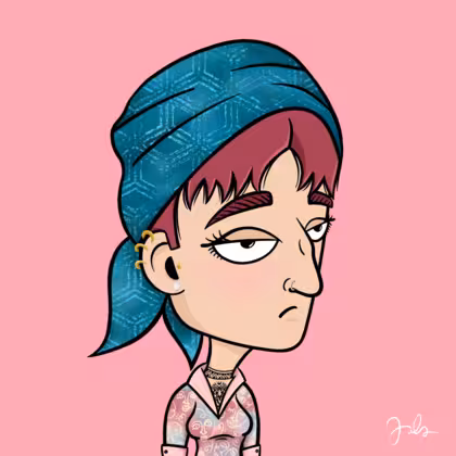 Collection Depressed Citizens Artist Juls Description ART. No team, no project, no future. Depressed Citizens is an urban & existential Art expression on Ordinals. In a parallel universe, "THEI" control us. DC unites against toxic society, encouraging critical thinking. 100% hand made collection that took Juls more than 6 months of daily work. Name Citizen#2557 Origin Caucasian non hispanic Gender Woman Necklace No Necklace Hat Printed head scarf Mustache Beard No beard Glasses No Glasses Earrings Tragus star earring Hair Style Short pixie Clothes Artsy pink shirt Tattoo Maya tattoo Star Background Without stars
