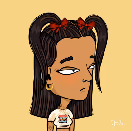 Collection Depressed Citizens Artist Juls Description ART. No team, no project, no future. Depressed Citizens is an urban & existential Art expression on Ordinals. In a parallel universe, "THEI" control us. DC unites against toxic society, encouraging critical thinking. 100% hand made collection that took Juls more than 6 months of daily work. Name Citizen#1101 Origin Asian & Pacific islander Gender Woman Necklace Gold layered necklace Hat Red bow Mustache Beard No beard Glasses No Glasses Earrings Tragus star earring Hair Style Long straight with space ponytails Clothes Take it easy crop top Tattoo Rose tattoo Star Background Without stars