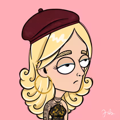 Collection Depressed Citizens Artist Juls Description ART. No team, no project, no future. Depressed Citizens is an urban & existential Art expression on Ordinals. In a parallel universe, "THEI" control us. DC unites against toxic society, encouraging critical thinking. 100% hand made collection that took Juls more than 6 months of daily work. Name Citizen#2488 Origin Caucasian non hispanic Gender Woman Necklace No Necklace Hat Burgundy beret Mustache Beard No beard Glasses No Glasses Earrings Tragus star earring Hair Style Long wavy Clothes Golden black halterneck top Tattoo Maya tattoo Star Background Without stars