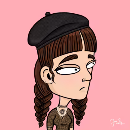 Collection Depressed Citizens Artist Juls Description ART. No team, no project, no future. Depressed Citizens is an urban & existential Art expression on Ordinals. In a parallel universe, "THEI" control us. DC unites against toxic society, encouraging critical thinking. 100% hand made collection that took Juls more than 6 months of daily work. Name Citizen#1086 Origin Caucasian non hispanic Gender Woman Necklace Pearl necklace Hat Black beret Mustache Beard No beard Glasses No Glasses Earrings Upper lobe rings Hair Style Double braids with bangs Clothes Old school brown printed shirt Tattoo Maya tattoo Star Background Without stars