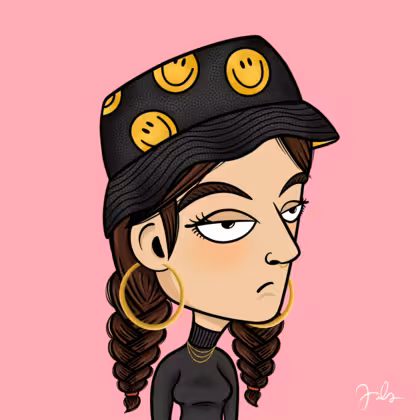 Collection Depressed Citizens Artist Juls Description ART. No team, no project, no future. Depressed Citizens is an urban & existential Art expression on Ordinals. In a parallel universe, "THEI" control us. DC unites against toxic society, encouraging critical thinking. 100% hand made collection that took Juls more than 6 months of daily work. Name Citizen#1889 Origin Caucasian non hispanic Gender Woman Necklace Gold layered necklace Hat Smiley bucket hat Mustache Beard No beard Glasses No Glasses Earrings Beading hoops Hair Style Double braids Clothes Black turtleneck women's sweater Tattoo No Tattoo Star Background Without stars