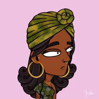 Collection Depressed Citizens Artist Juls Description ART. No team, no project, no future. Depressed Citizens is an urban & existential Art expression on Ordinals. In a parallel universe, "THEI" control us. DC unites against toxic society, encouraging critical thinking. 100% hand made collection that took Juls more than 6 months of daily work. Name Citizen#2278 Origin African descendant Gender Woman Necklace Gold layered necklace Hat Green turban Mustache Beard No beard Glasses No Glasses Earrings Tragus star earring Hair Style Long wavy Clothes Tropical one shoulder top Tattoo Rose tattoo Star Background Without stars