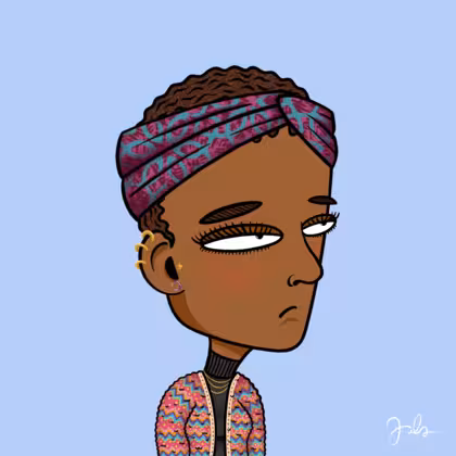 Collection Depressed Citizens Artist Juls Description ART. No team, no project, no future. Depressed Citizens is an urban & existential Art expression on Ordinals. In a parallel universe, "THEI" control us. DC unites against toxic society, encouraging critical thinking. 100% hand made collection that took Juls more than 6 months of daily work. Name Citizen#2694 Origin Hispanic Gender Woman Necklace Gold layered necklace Hat Printed headband Mustache Beard No beard Glasses No Glasses Earrings Tragus star earring Hair Style Short curly with gel Clothes Black turtleneck women's sweater Tattoo No Tattoo Star Background Without stars