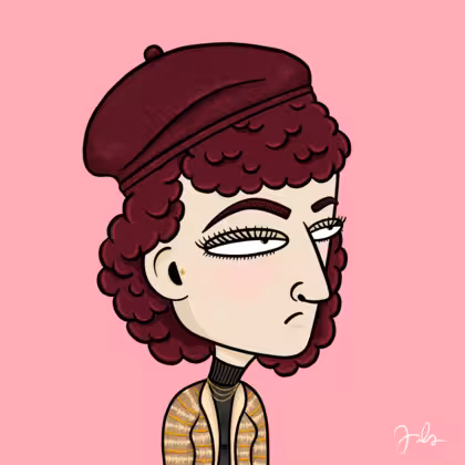 Collection Depressed Citizens Artist Juls Description ART. No team, no project, no future. Depressed Citizens is an urban & existential Art expression on Ordinals. In a parallel universe, "THEI" control us. DC unites against toxic society, encouraging critical thinking. 100% hand made collection that took Juls more than 6 months of daily work. Name Citizen#170 Origin Caucasian non hispanic Gender Woman Necklace Gold layered necklace Hat Burgundy beret Mustache Beard No beard Glasses No Glasses Earrings Tragus star earring Hair Style Curly Clothes Black turtleneck women's sweater Tattoo No Tattoo Star Background Without stars
